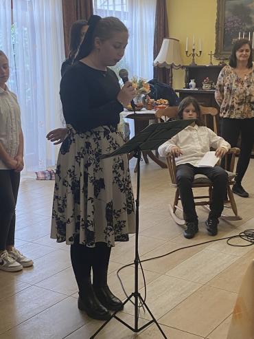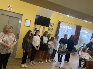 Az idősek világnapja alkalomból ellátogattunk az Unger László Idősek Otthonába, hogy hagyományainkhoz híven az idei évben is kis köszöntő műsorral csalhassunk mosolyt az otthon lakóinak arcára. Az iskolánk énekkarával előadott megható dalok közepette közönségünk Túrmezei Erzsébet Boldog út című versével ismerkedhetett meg Pintér Zélia előadásában, A kínai vízhordó történetét hallgathatta meg Göde Hanna előadásában, Szakály Éva Alkudozás című versét pedig Korona Simon szavalatában. A hangulat meghitt, ugyanakkor jókedvű volt. Az idősek nagy szeretettel fogadták a gyerekek dalait, verseit és történetét. A műsort követően tanulóink pogácsákkal és kis süteményekkel kínálták meg az otthon lakóit és a gondozókat. A látogatás minden résztvevő számára élmény volt, s mindnyájunkat emlékeztetett arra, milyen fontos az odafigyelés, a gondoskodás és a generációk közötti kapcsolat ápolása. Köszönjük szépen a kedves fogadtatást és az együtt töltött vidám perceket! Az odaadó, lelkes felkészítést köszönjük szépen Kónya Zsuzsanna tanárnőnek!
