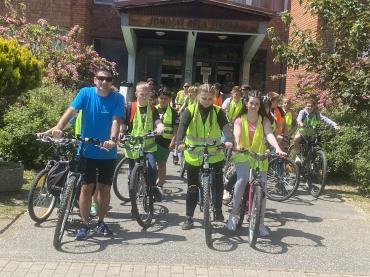 A felhívásra iskolánk felsős tanulói és kísérő tanárai kedden délután, kellemes napsütésben bringára pattantak. A 24 km-es táv célpontja a csákánydoroszlói Vízi Vándor Természetvédelmi Látogatóközpont volt. Pihenésképpen egy órát töltöttek el a Rába menti szép környezetben. A hazaúton, már érezhető volt a megtett kilométerek fáradalma. Tanulóink jó hangulatban, vidáman gurultak be iskolánk bejáratához, ahol szívesen osztották meg élményeiket diáktársaikkal.