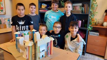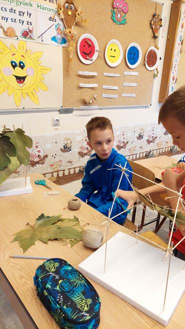A 4.A technika óráin mostanában a fenntarthatóság és a kreativitás áll a középpontban. A tanulók bebizonyították, hogy a barkácsoláshoz nem mindig kell új alapanyag – sokszor elég egy kis fantázia és néhány újrahasznosítható holmi. Készítettek házikókat természetes anyagokból, például ágakból, termésekből és levelekből, valamint vármakettet is, amihez kidobásra szánt dobozokat használtak fel. A közös munka nemcsak a kézügyességet és a kreativitást fejlesztette, hanem erősítette a csapatmunkát és a környezet iránti felelősségérzetet is. Az elkészült alkotások igazi díszei lettek a tanteremnek, és jó példát mutatnak arra, hogy a fenntarthatóság és az élményalapú tanulás kéz a kézben járhatnak.