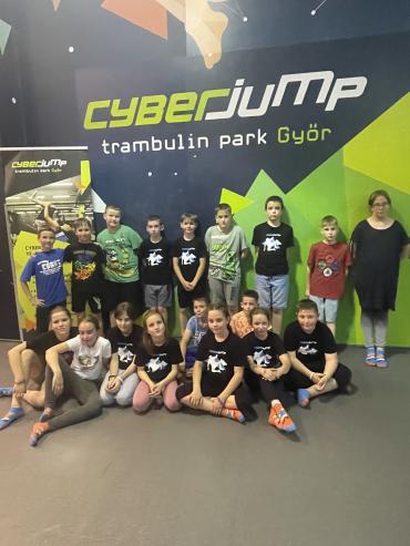 Ezután egy közeli játszótérre látogattunk el, ahol mindenki felszabadultan játszhatott, hintázhatott, mászhatott és nevethetett. A nap egyik fénypontja a Cyberjump trambulinpark volt, ahol az osztály apraja-nagyja kiugrálhatta magát. Itt mindenki kipróbálhatta ügyességét a különböző trambulinpályákon, és rengeteg mozgásban lehetett részük.