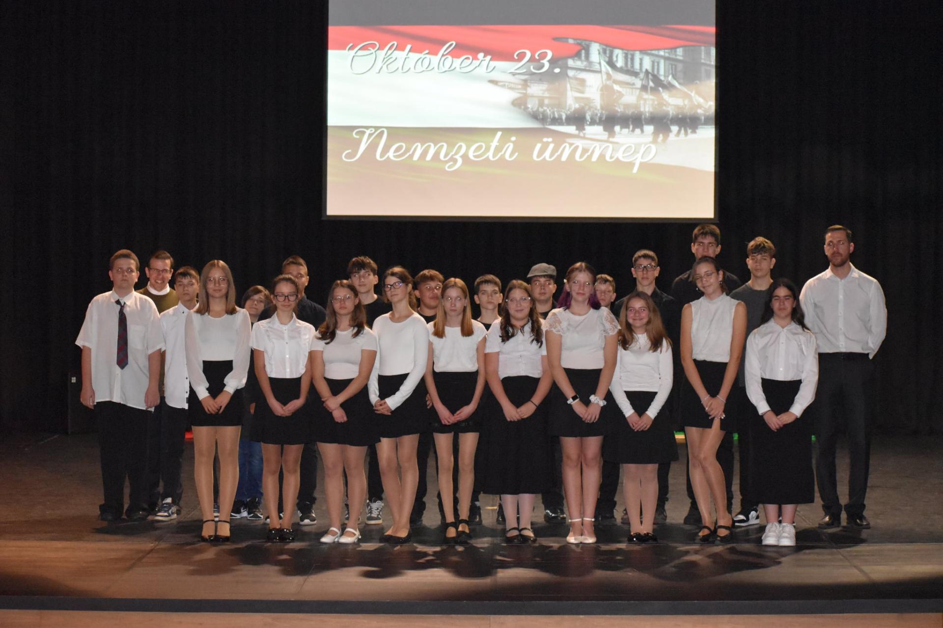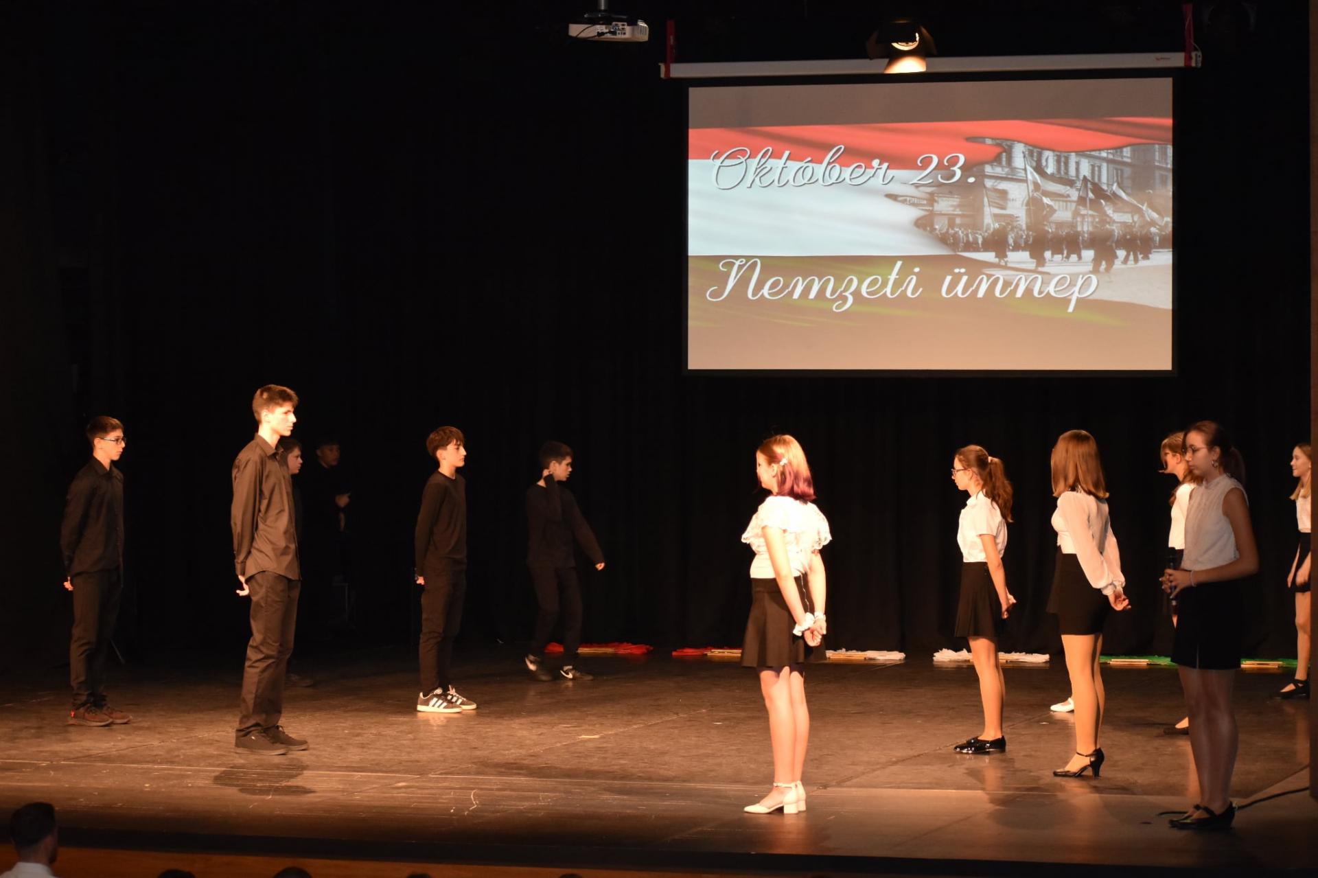 Iskolánk október 22-én méltó módon emlékezett meg az 1956-os forradalom és szabadságharc hőseiről. 7.a osztályos tanulóink adták elő az ünnepi műsort, amelyben verssel, prózával és zenével idézték fel történelmünk egyik meghatározó eseményét. Az előadást az Olcsai-Kiss Zoltán Általános Iskola és a Somogyi Béla tagiskola tanulói és nevelő együtt tekintették meg. A szereplők bemutatták a forradalom kirobbanásának okait és a fiatalok szerepét a szabadságért vívott küzdelemben. A rendezvény méltó alkalom volt arra, hogy az iskola közössége együtt gondoljon az 1956-os események tanulságaira és hozzájárult ahhoz, hogy a fiatalabb generációk is átérezzék a szabadság fontosságát. Köszönjük a 7.a osztály tanulóinak és a felkészítő tanároknak.