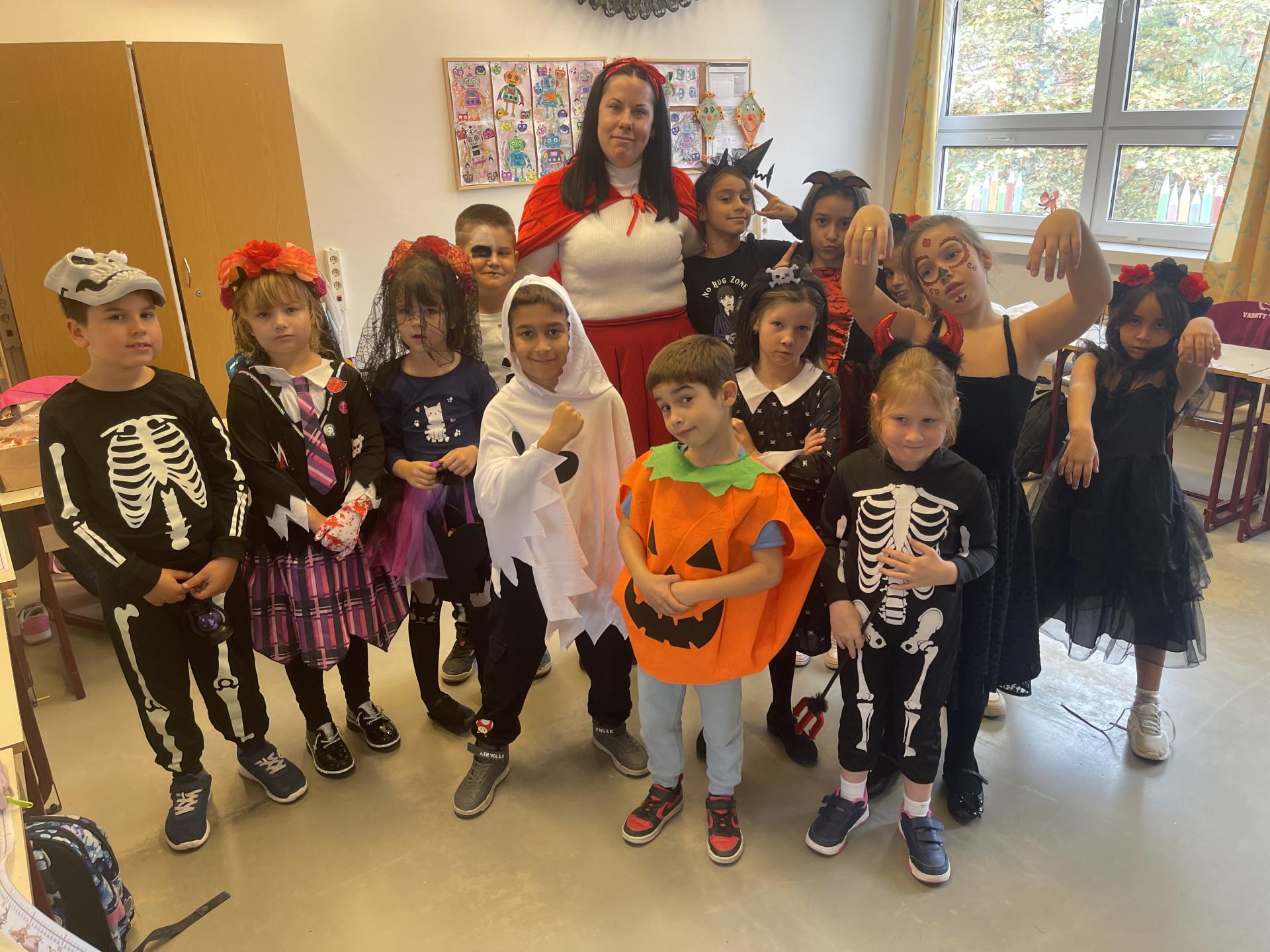 2025.10.17-én különleges napra ébredt a 2.b osztály – elérkezett a várva várt Halloweeni party! Az osztályterem már reggelre szellemekkel, denevérekkel és töklámpásokkal volt feldíszítve, a gyerekek pedig izgatottan érkeztek be – természetesen jelmezben!