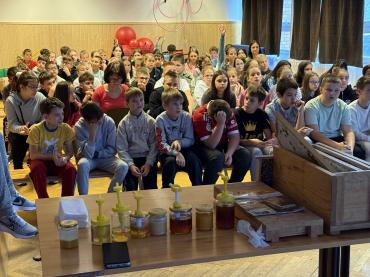 Felsős diákjainknak rendhagyó természetismeret órában lehetett részük az Állatok Világnapja alkalmából. Vendégünk Dolgos Anikó méhész volt, aki izgalmas előadást tartott a méhek világáról, a beporzás fontosságáról és arról, hogy milyen fontos szerepet játszik a méz az egészséges táplálkozásban.