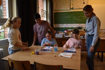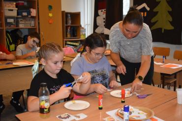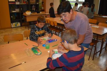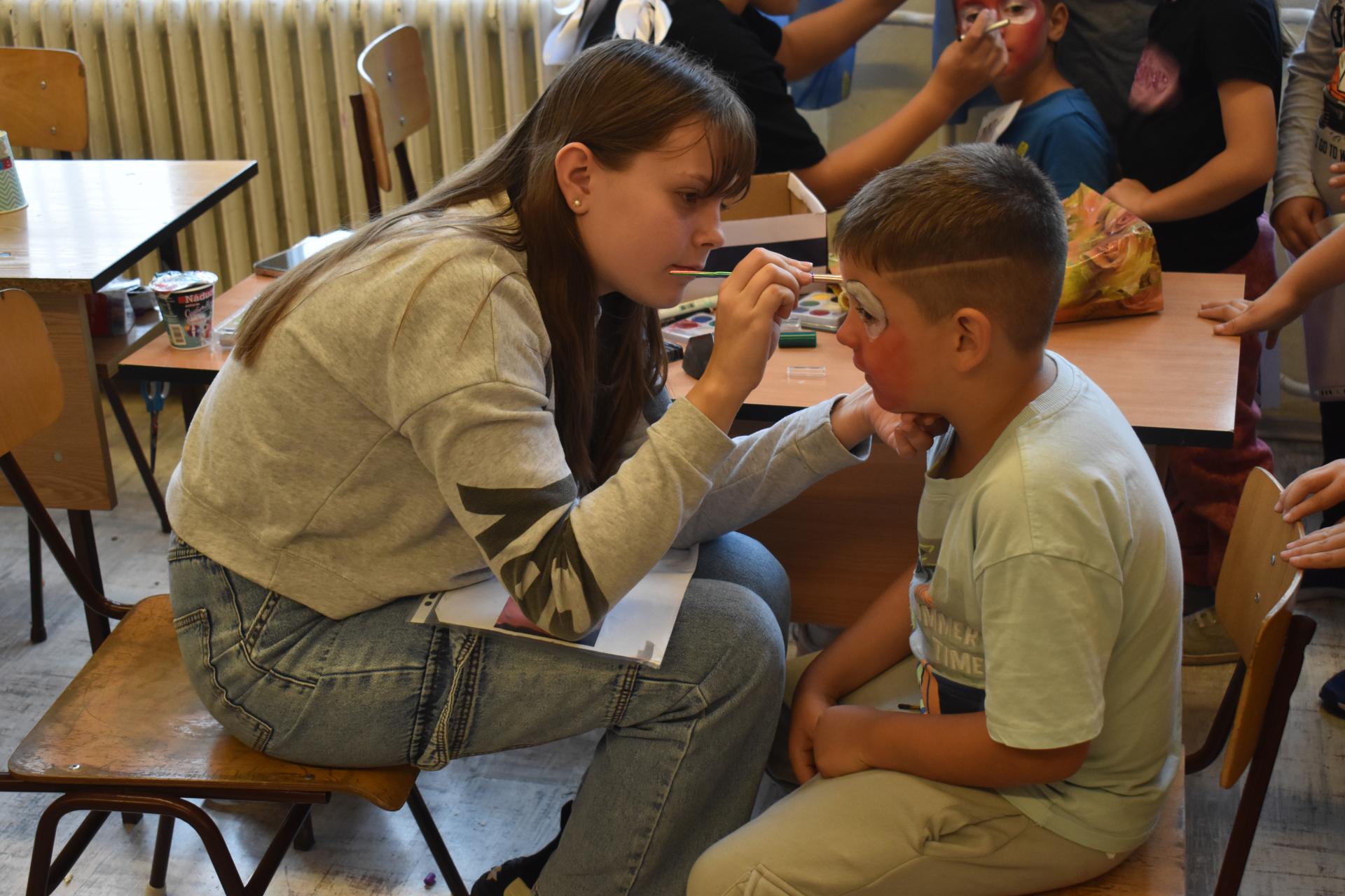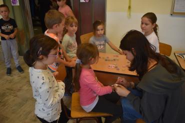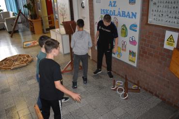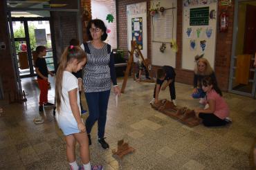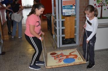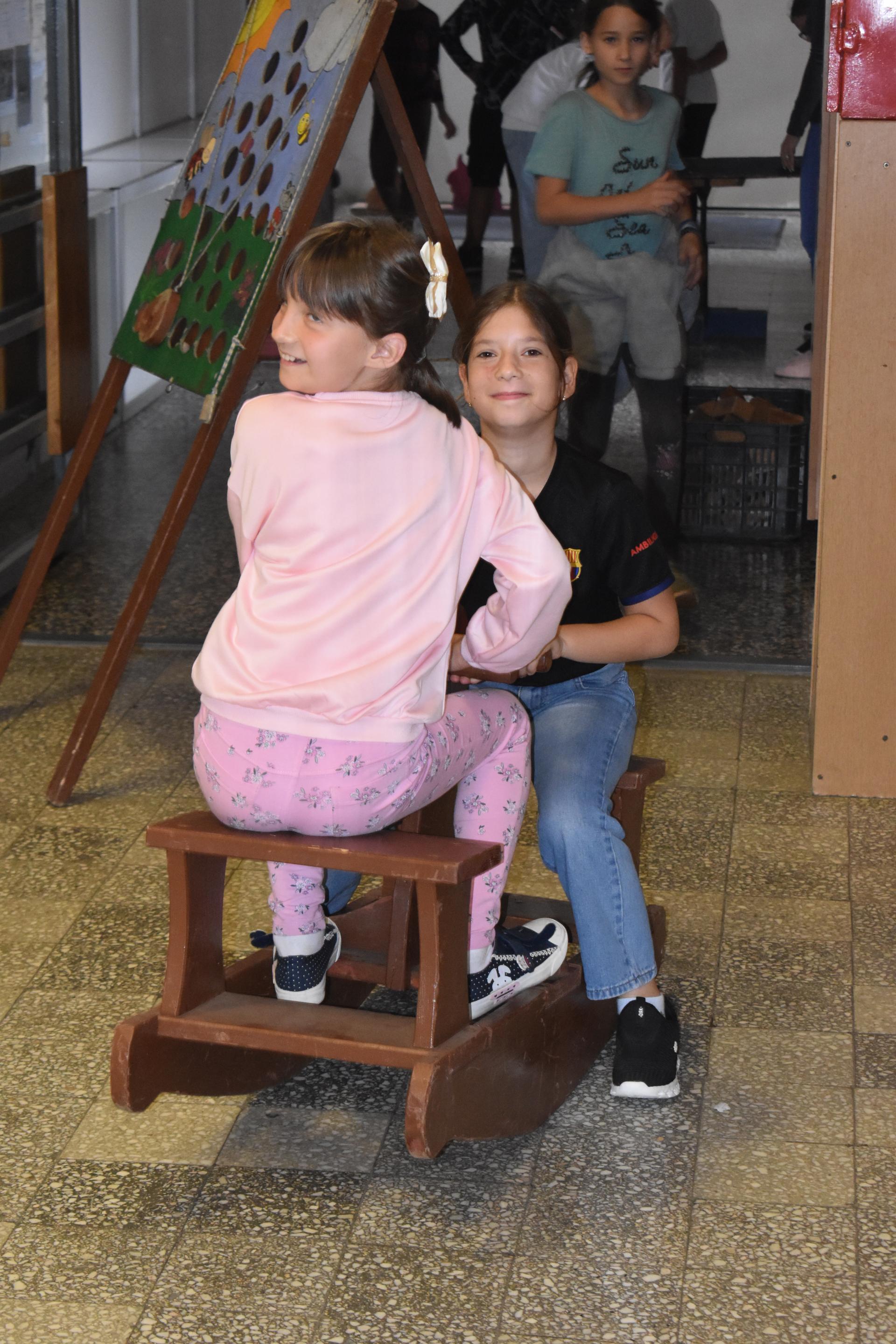 Az alsósok a földszinten vehettek részt sokszínű foglalkozásokon: arcfestésen, csillámtetkó-készítésen, gyümölcskóstoláson, dugónyomdával szőlőfürt-készítésen, kézműveskedésen, valamint mozgásos játékokon a tornaszobában. A könyvtárban társas- és építőjátékok, a zsibongóban pedig népi fajátékok várták őket. A legkisebbek körében a hajfonás is nagy sikert aratott.