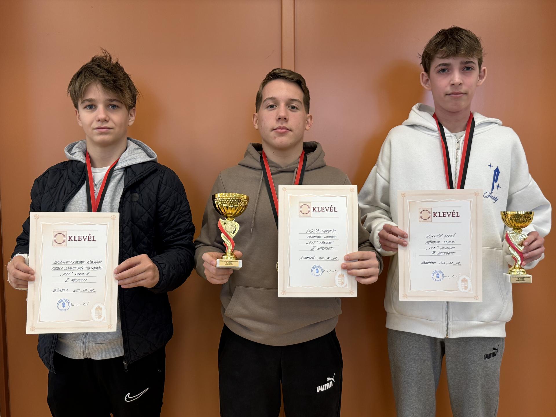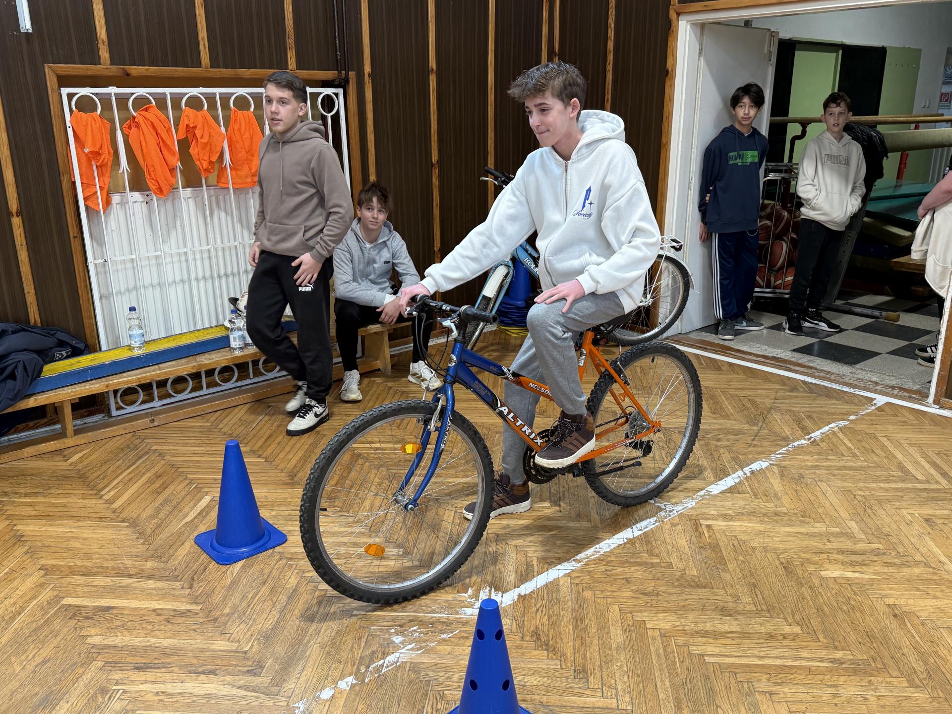 A Vas Vármegyei Szakképzési Centrum Rázsó Imre Technikuma 2025. november 11-én rendezte meg, a most már hagyománnyá vált V. közlekedésbiztonsági versenyét, a „140 éves a szakképzés Körmenden” jubileumi rendezvénysorozat keretein belül. A regisztráció és Varga Zoltánné igazgatónő megnyitója után fiúcsapatunk, Horváth Gergő, Száraz Ádám és Varga Zsombor 8. A osztályos tanulóink, hozzáfogtak a szervezők által előírt feladatok végrehajtásához. Három részből állt a közlekedésbiztonsági megmérettetés: az első rész egy KRESZ-teszt volt, mely az elméleti felkészültségüket mérte. Ezután két gyakorlati rész következett: egy kerékszerelési feladat, és egy másik kerékpár kerekeinek levegőnyomás ellenőrzéséből tevődött össze. A harmadik feladatot a tornateremben bonyolították le a szervezők, mely a Körmendi Rendőr-kapitányság Közlekedési Osztály által felállított ügyességi pályáján zajlott. A versenyzők által kiválasztott kerékpárral kellett végig haladni a pályán, minél kevesebb hibaponttal és a legrövidebb időn belül. Bringásaink ebben a tanévben aranyérmet szereztek, ugyanakkor egyéniben Varga Zsombor (II. helyezés) és Horváth Gergő (III. helyezés). Gratulálunk versenyzőinknek, köszönjük Németh Tamás felkészítő munkáját.