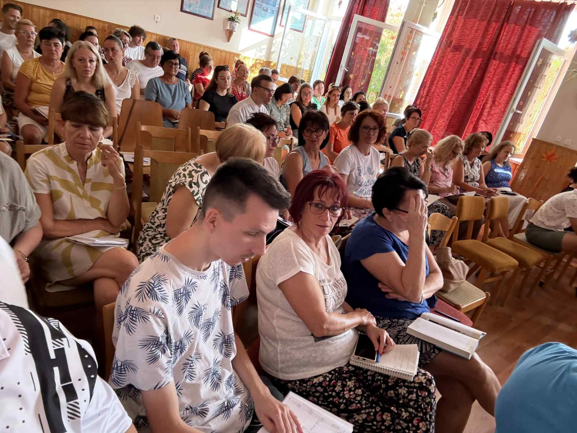 Iskolánk dolgozói különösen hasznos és tanulságos programon vehettek részt a tanévkezdést megelőzően, ugyanis augusztus 29-én intézményünkbe látogatott Könye Attila, az Országos Mentőszolgálat munkatársa, aki újraélesztési gyakorlatot tartott számunkra. A foglalkozás során elméleti és gyakorlati tudással is gazdagodhattunk, s feleleveníthettük korábban megszerzett ismereteinket arról, hogy hogyan kell eljárnunk, ha légzési vagy keringési elégtelenségben szenvedő emberen szükséges segíteniük. A mentőtiszt interaktív előadása során megtanultuk, hogyan kell helyesen felismerni a vészhelyzetet és hogyan kell segítséget hívni, valamint gyakorolhattuk a mellkaskompresszió és a befúvás helyes technikáját is. A képzés nemcsak szakmailag volt rendkívül értékes, hanem ahhoz is hozzájárult, hogy magabiztosabban és felelősségteljesebben tudjunk reagálni egy esetleges vészhelyzetben. Köszönjük Könye Attilának a hasznos és inspiráló előadást!