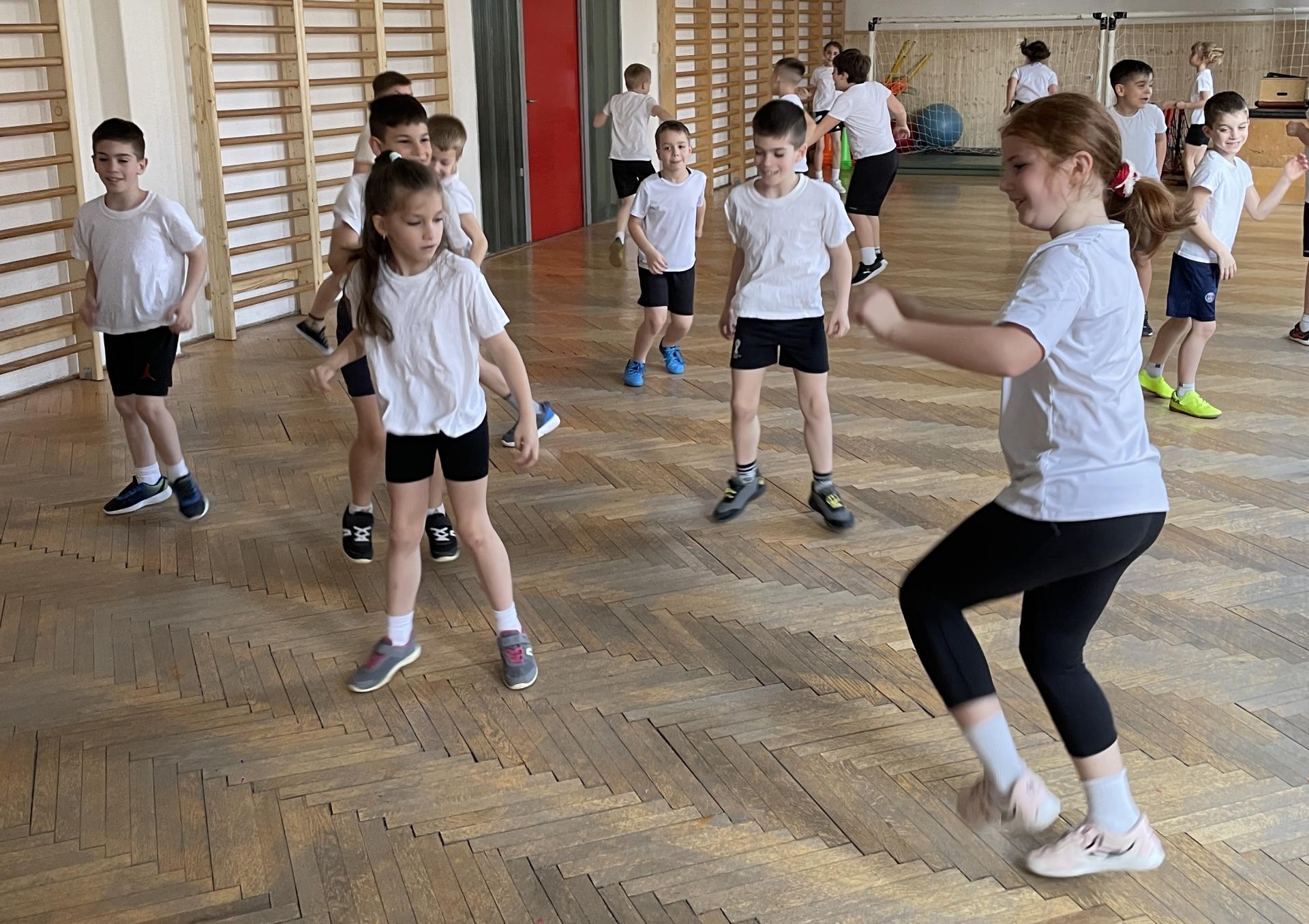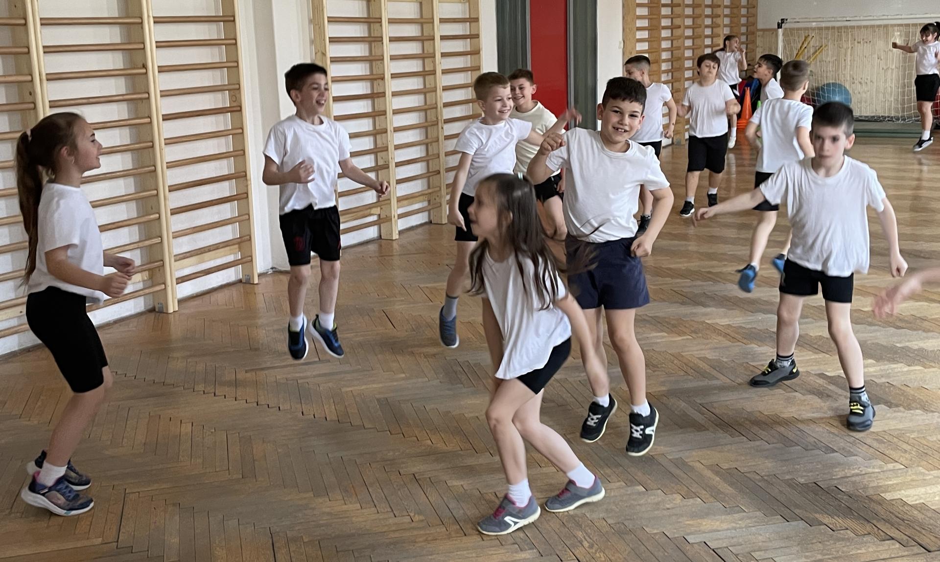 Különleges testnevelés órában volt része az első és a második évfolyamos diákjainknak. Jó hangulat jellemezte a foglalkozást, ahol a zene segítségével számos képességfejlesztő gyakorlatot végeztek tanulóink, mindezt csupa mosollyal és élvezettel. Nagy örömmel fogadták és lelkesen dolgoztak a gyerekek ezen a zenés móka – tornán.